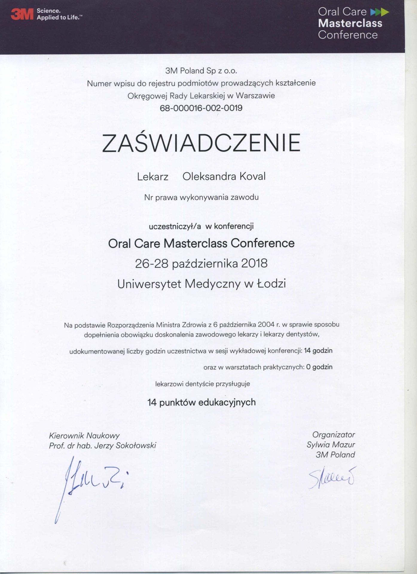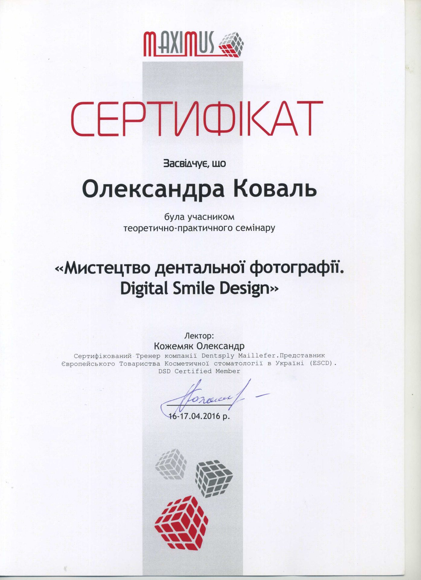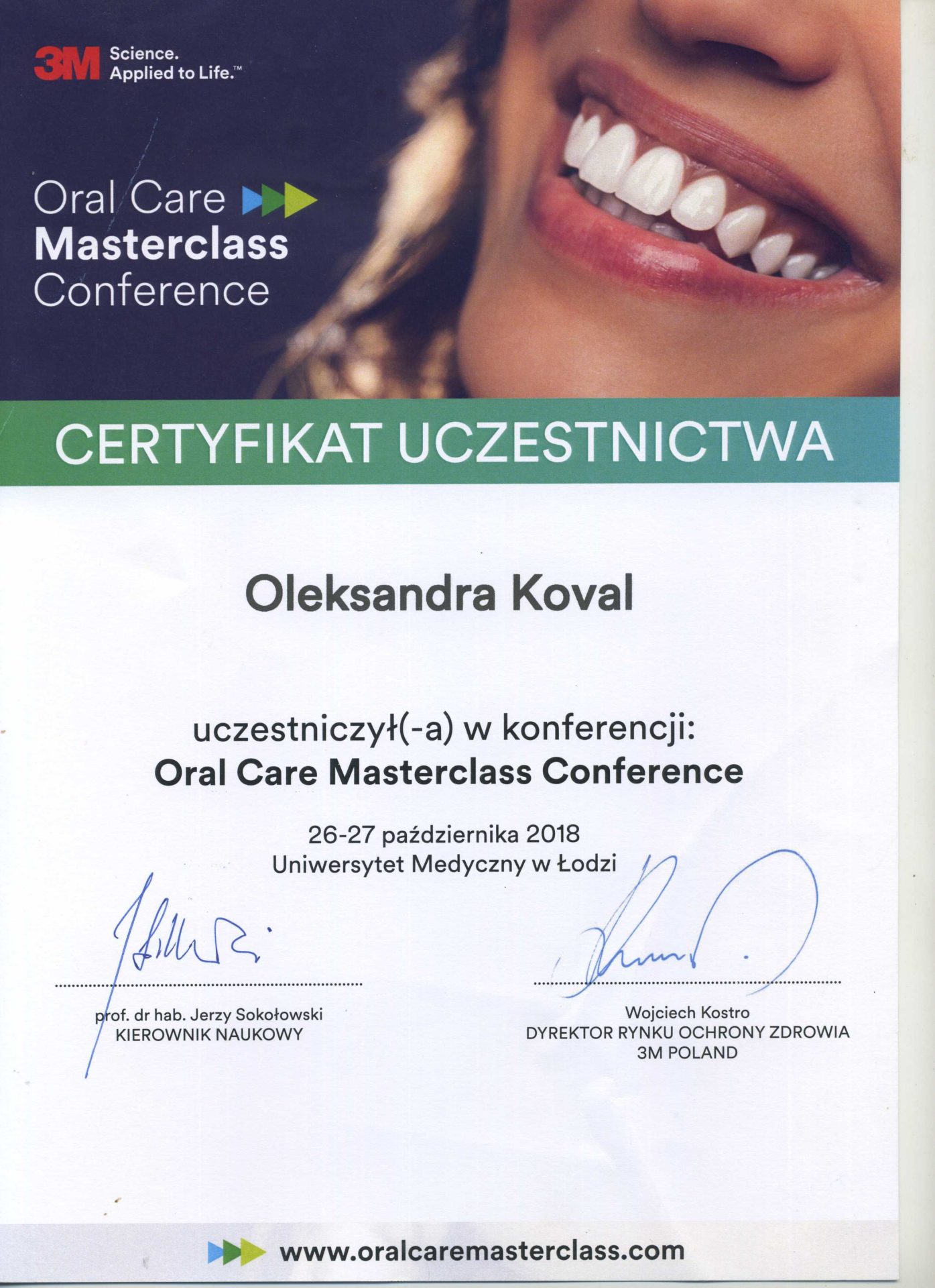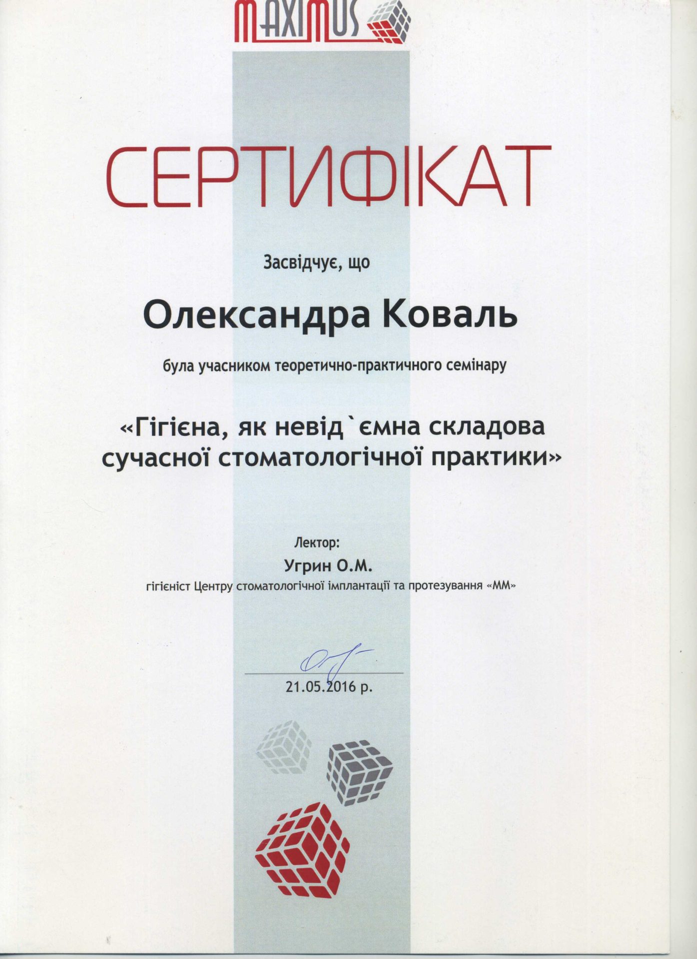 • 2021 – закінчила інтернатуру на базі НМУ ім. О.О. Богомольця за спеціальністю стоматологія.